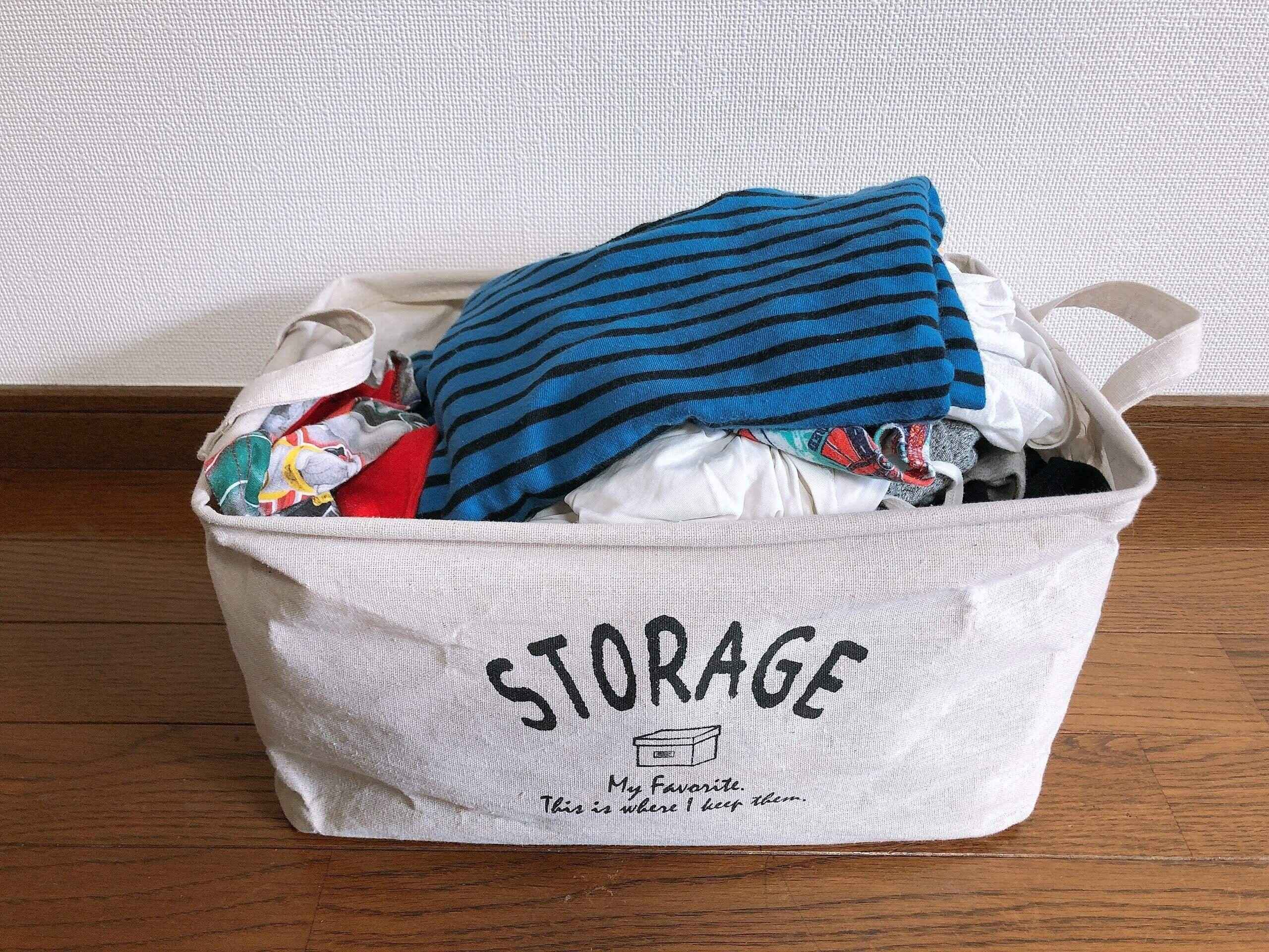 そしてパジャマや下着などお風呂上がりに着る服(子どもたちと私の分)についてはこの収納ボックスに適当に放り込む!