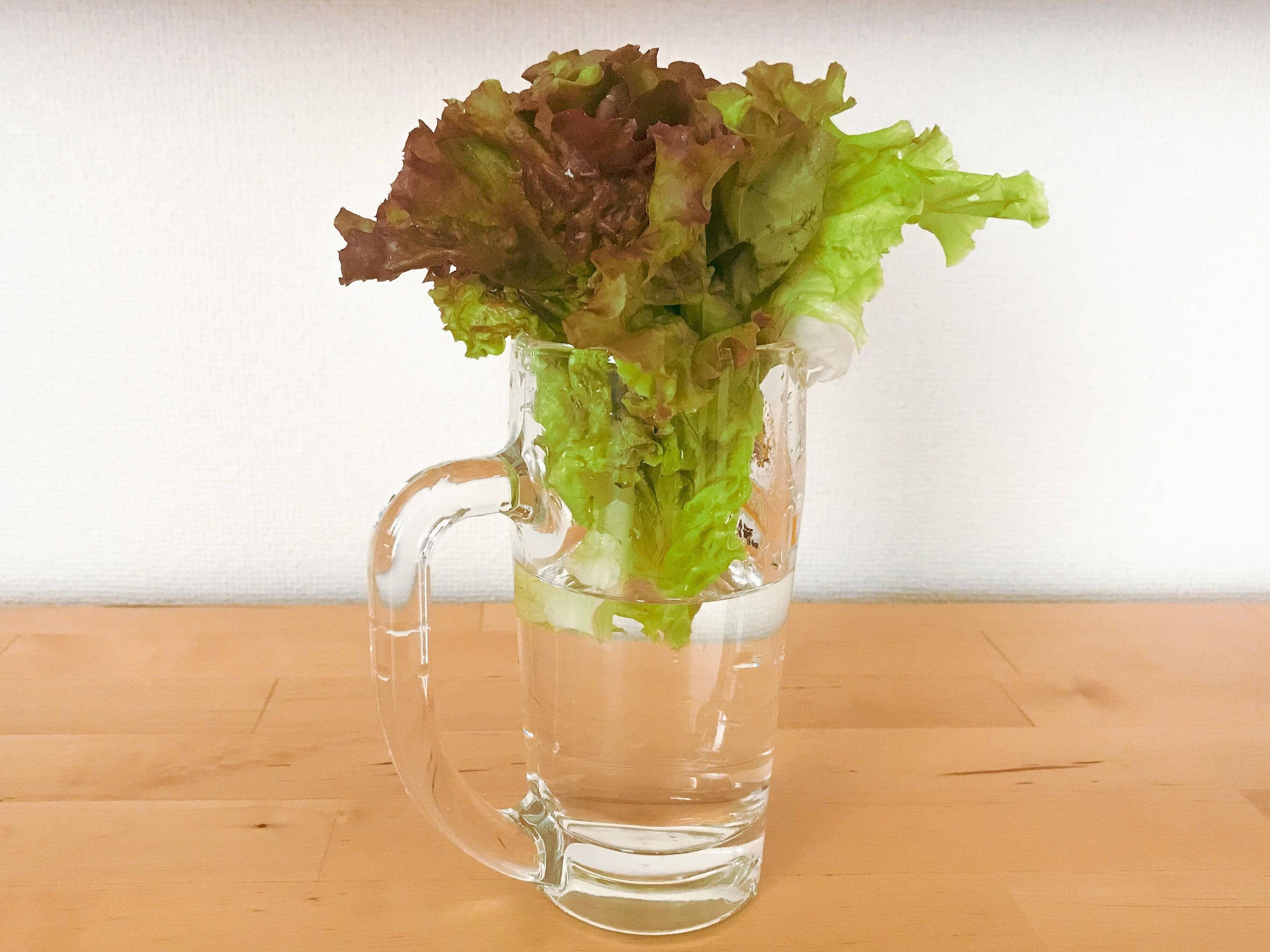 しんなり元気がなかったレタスも、葉先までピシッとしました!