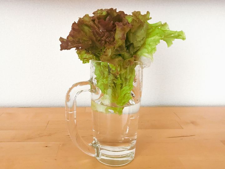容器に水をいれ、レタスの根元を水に浸かる状態にします。
