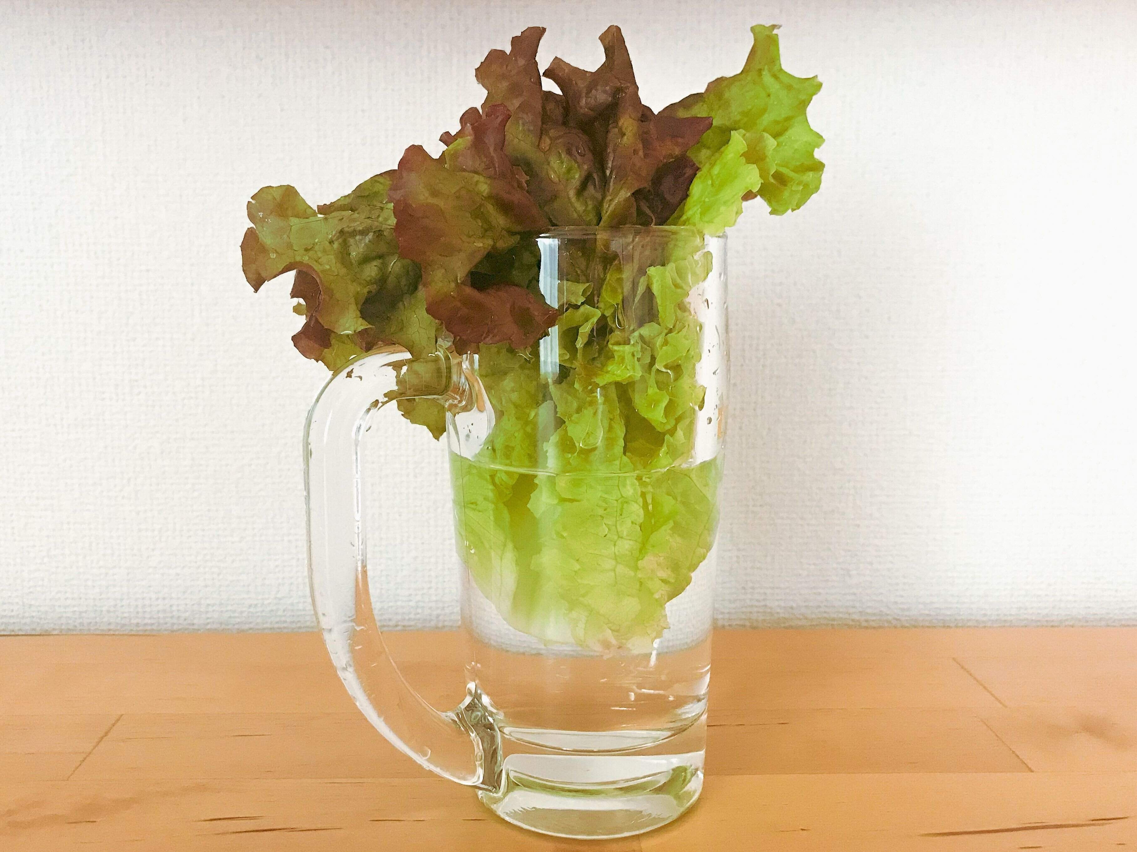 こちらの復活方法は、しんなりしてしまったレタスに水分を吸収させるものです。傷んで葉がとろけてしまっているようなものには適しませんので、ご注意ください。
