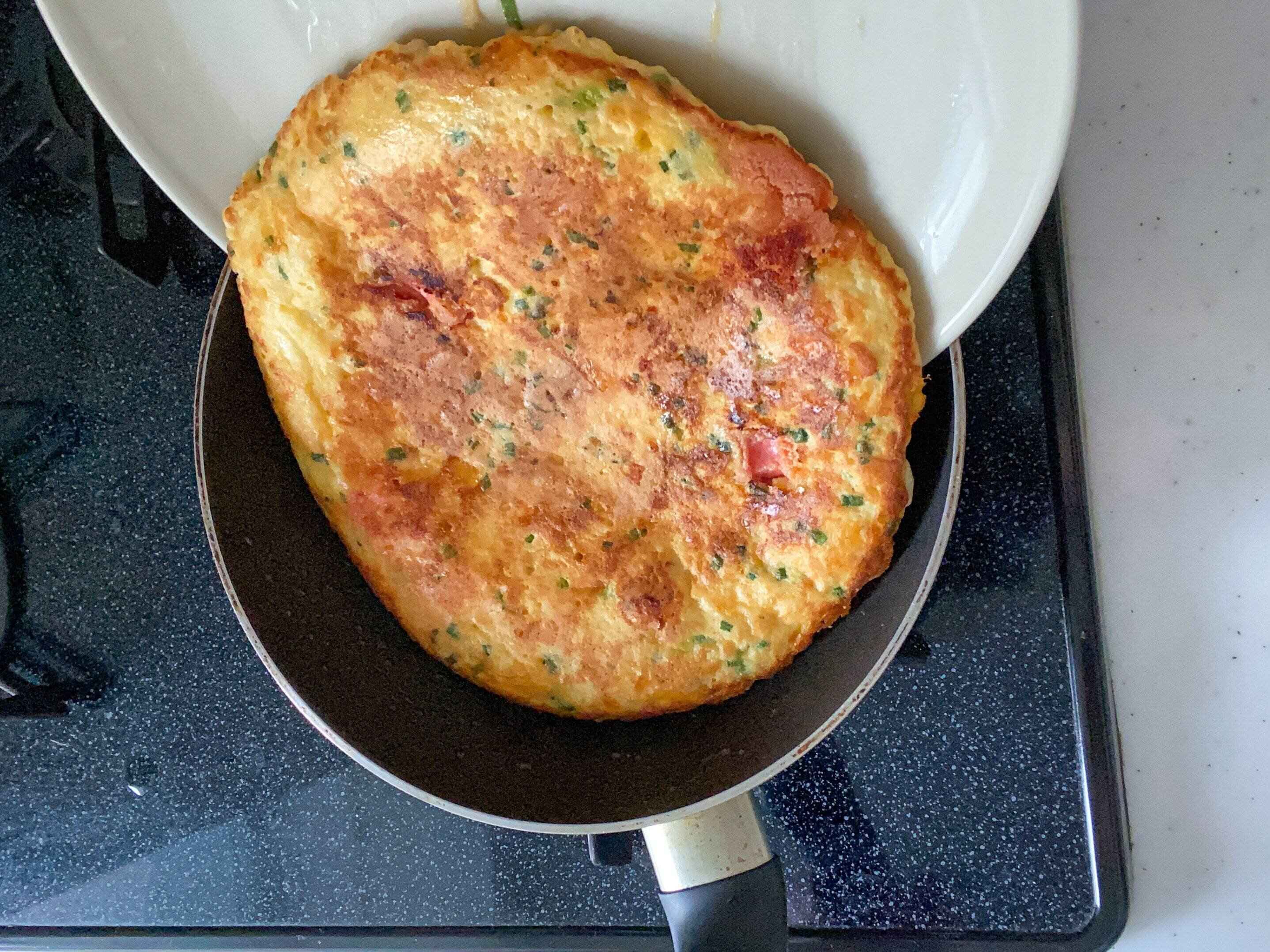 そんなときは、フライパンよりひとまわり大きいお皿を使えば失敗なくひっくり返せます。