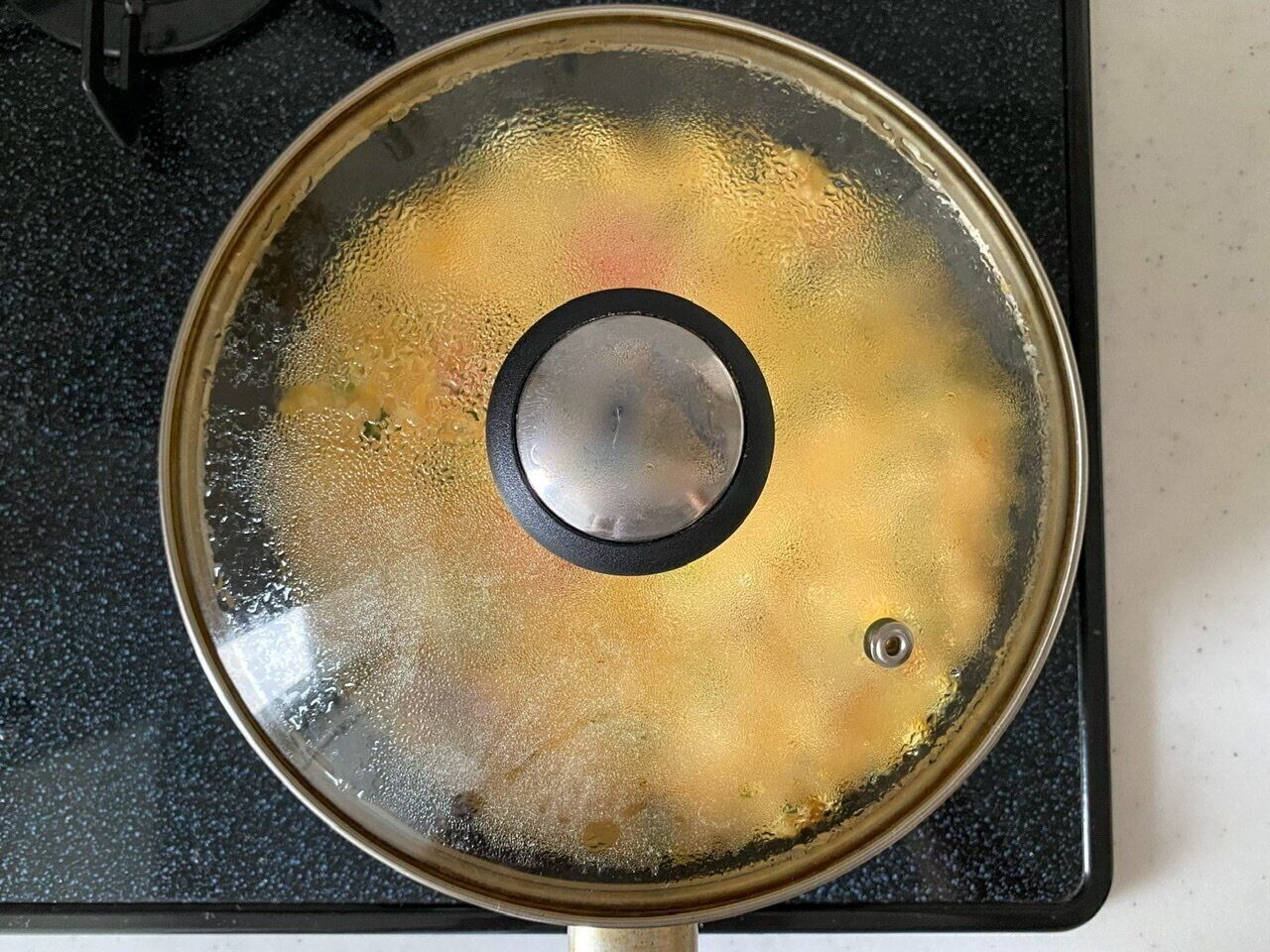 ふたをして弱火のまま4〜5分蒸し焼きにする。