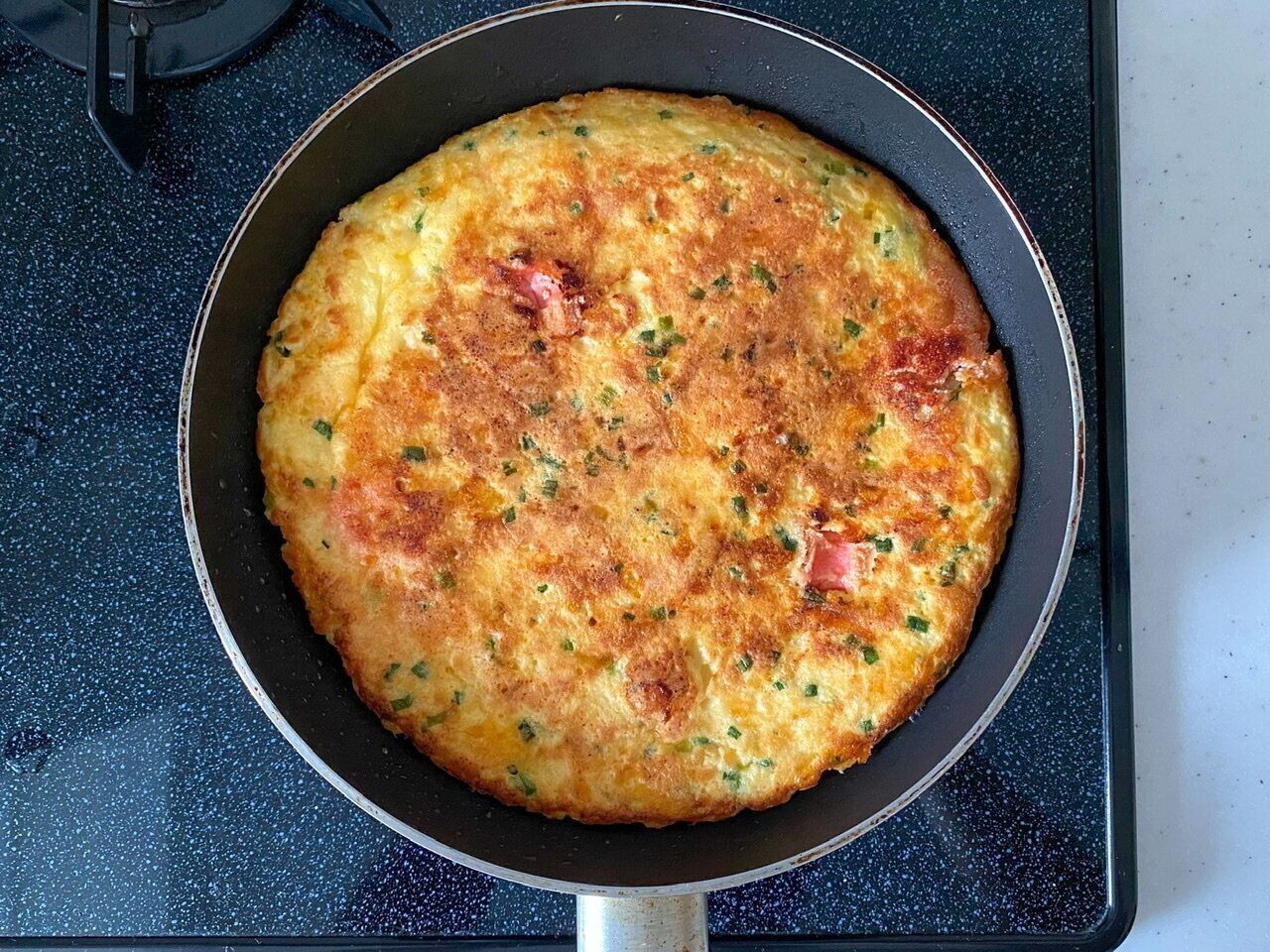 表面がまだ半熟気味だったり、底面の焼き色がうすい場合は、火を少し強めに調整してください。