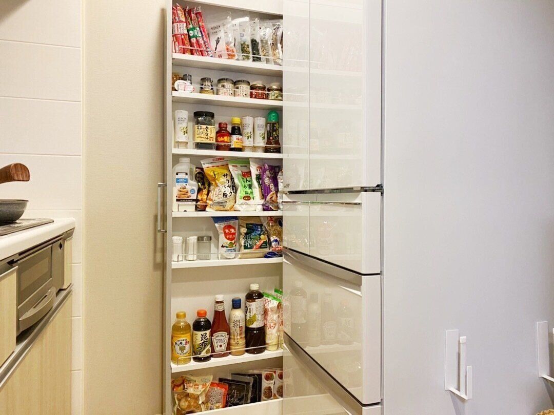 簡単にストック把握することができ、ひいては食品ロスを減らす薄型収納いかがでしょう。