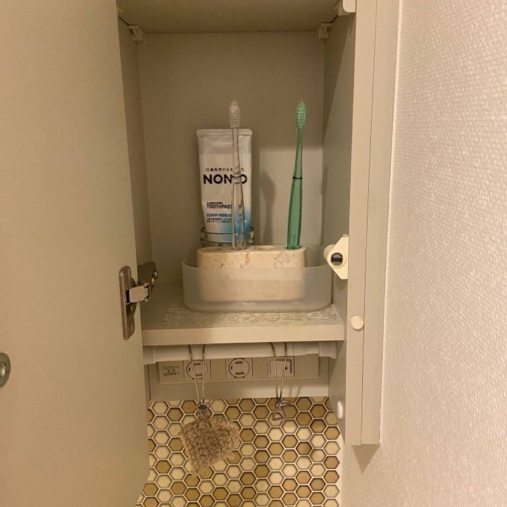 生活感が出やすいアイテムNo.1の歯ブラシも収納しています。
