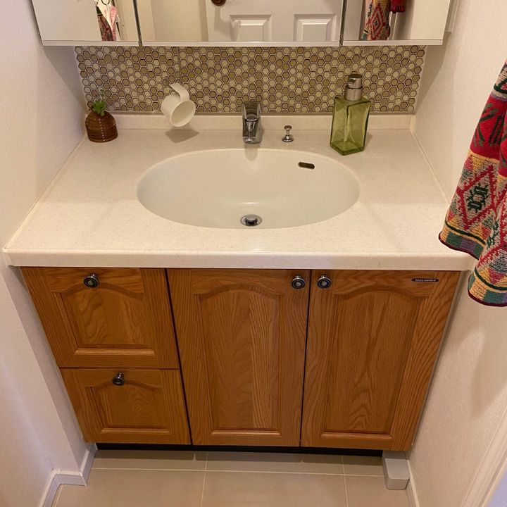 水まわりのメンテナンスは「いかに水滴を残さないか!」が、大掃除が必要になるかどうかの分かれ道になると思います。水道水に含まれているミネラルやカルシウムが固まってしまい水アカになるそうです。その水アカの原因になる水滴をすぐ拭き取れるように、拭き上げタオルを近くに置いてます。