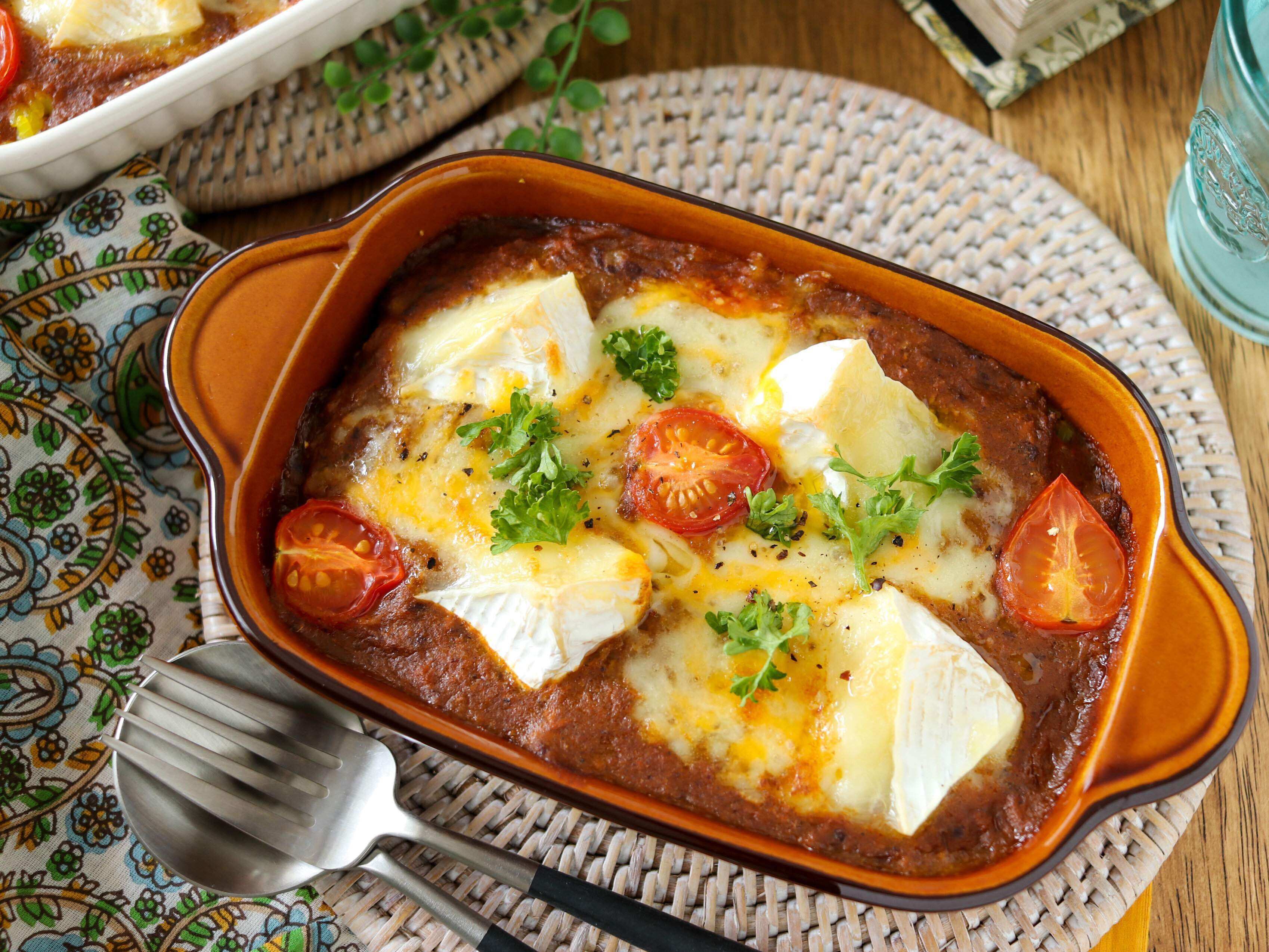 カマンベールチーズを使うとごちそう感がより一層プラスされますが、ちょっと節約したいな…というときは、ウインナーやゆで卵がオススメです!赤、黄、緑をバランスよく入れると彩りもよくなりますよ。