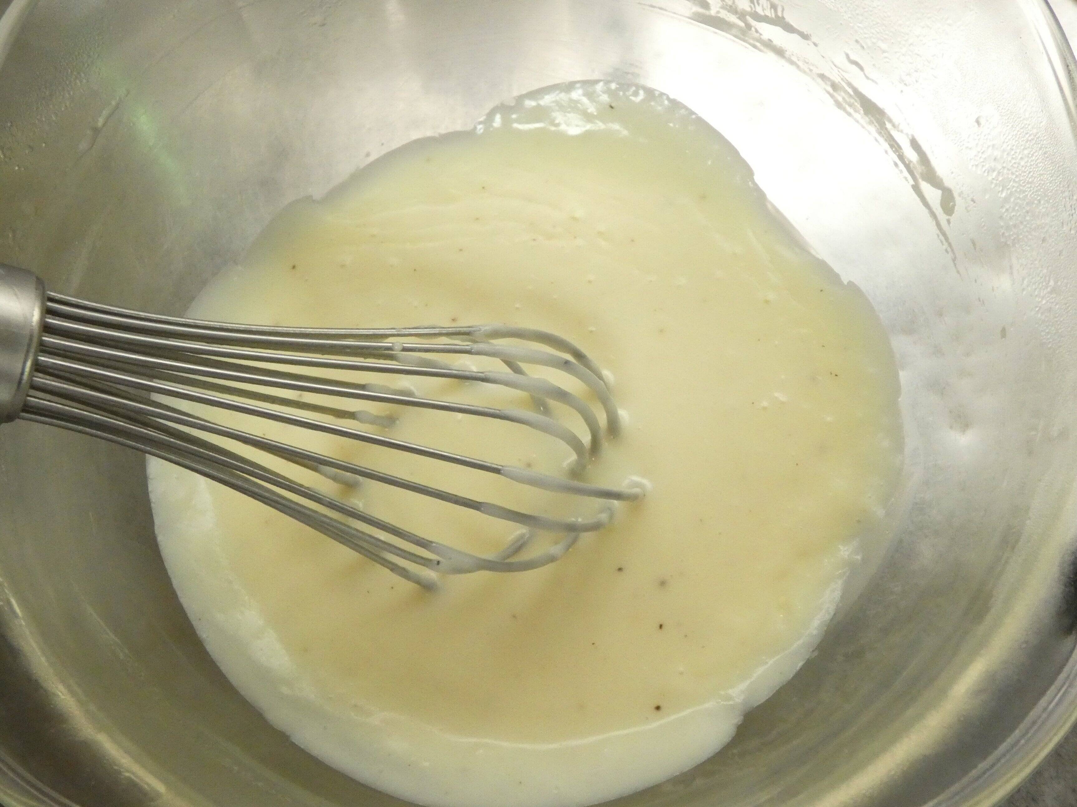 始めは少しずつ混ぜ合わせ、徐々に量を増やしていくとダマになりにくいです。