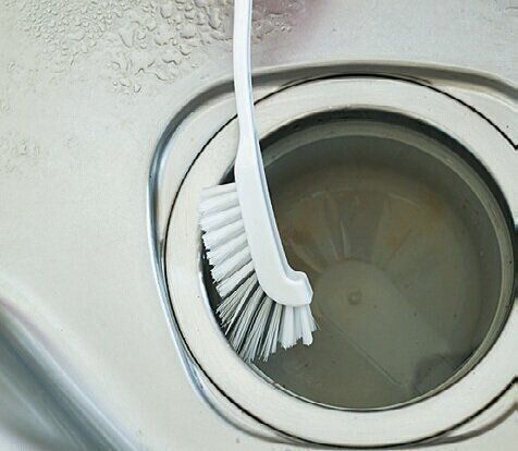 1 アルカリ電解水をかけて排水口ブラシで洗う