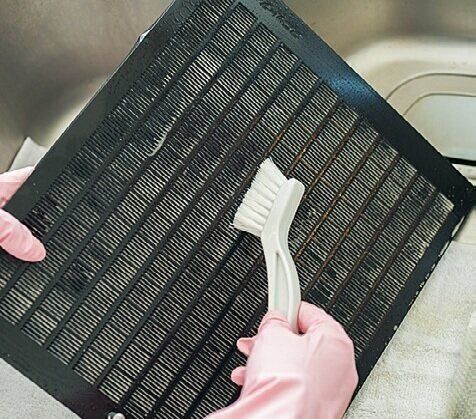 1の湿布していたペーパーを使って、フィルターをまんべんなく拭く。この手間で汚れがざっと落ちて仕上げが楽に。