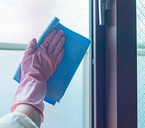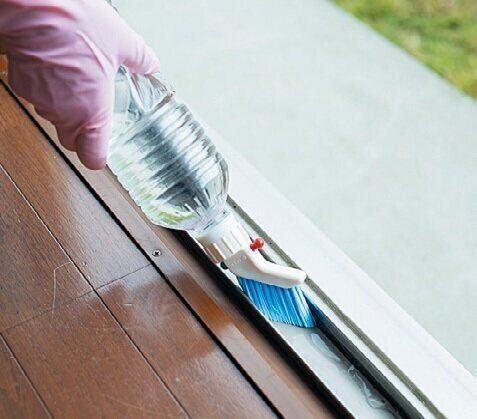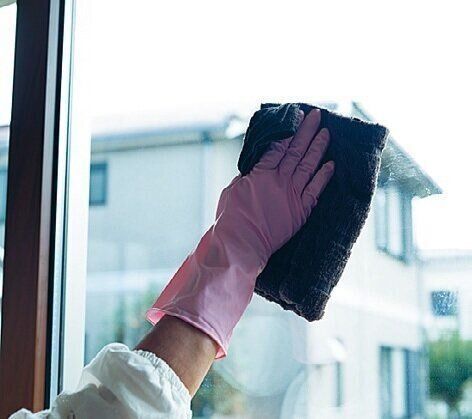 3 お掃除手袋に洗剤を吹きつけながら拭く
