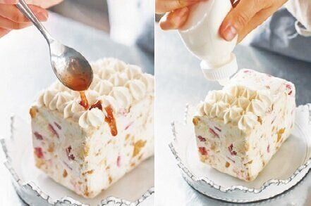 *飾りつけて仕上げてからすぐに食べない場合は、冷凍室にアイスケーキを入れるスペースを空けておいてください。