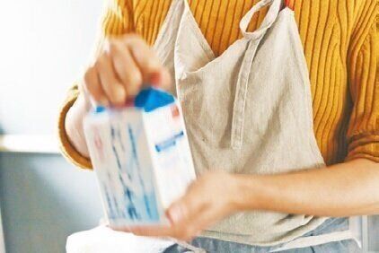 牛乳パックに[A]を入れ、パックの口をとじて上下によくふる。