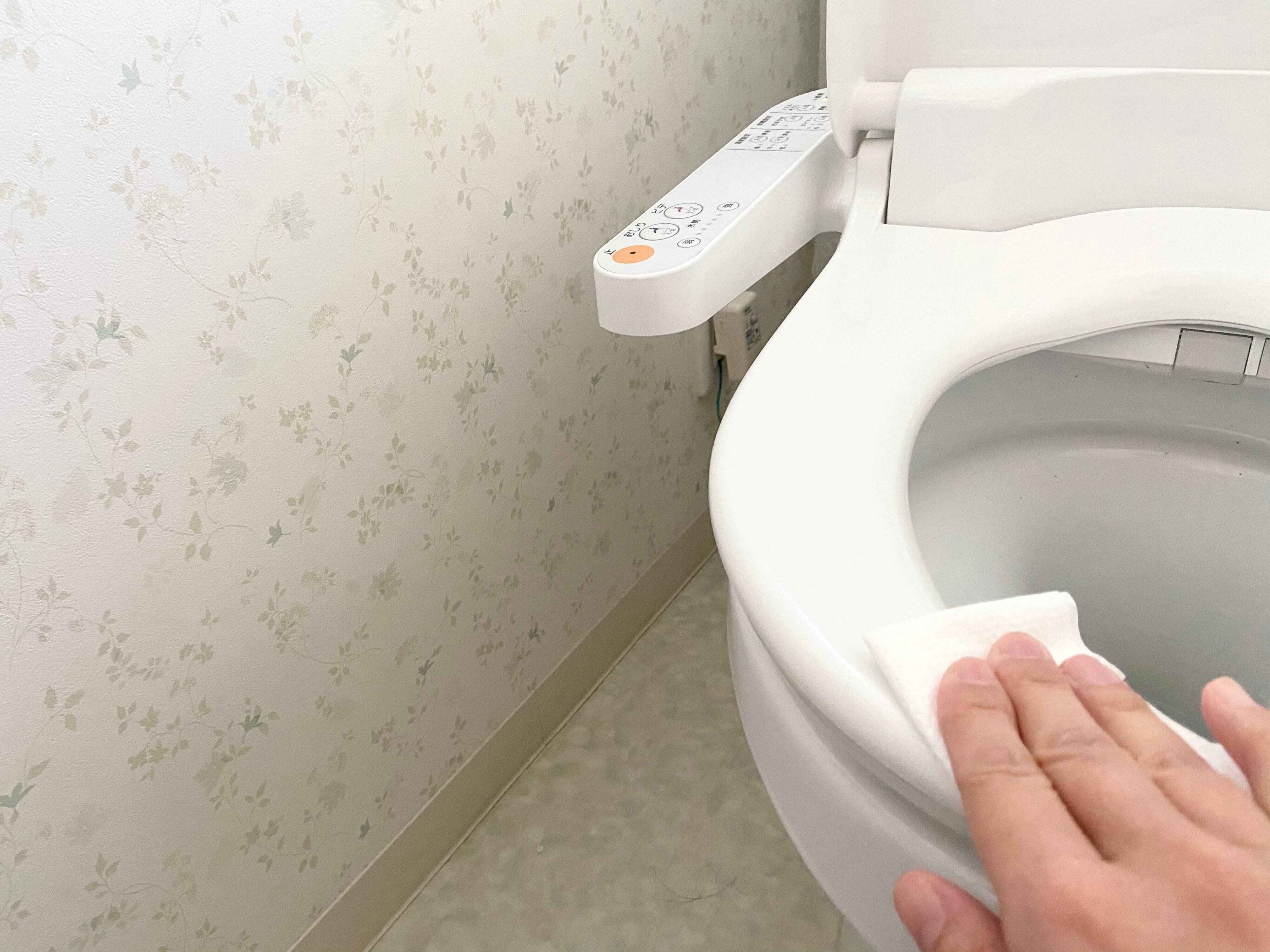 トイレを使うついでに便座を見て汚れを見つけたら、トイレットペーパーにアルコール除菌をつけてサッと一拭きして綺麗を保ちます。