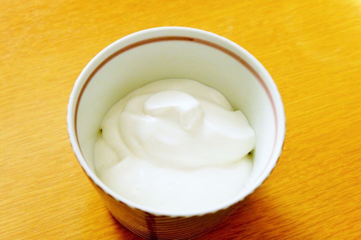 2.ボウルにヨーグルトを入れ、なめらかになるまで混ぜる。