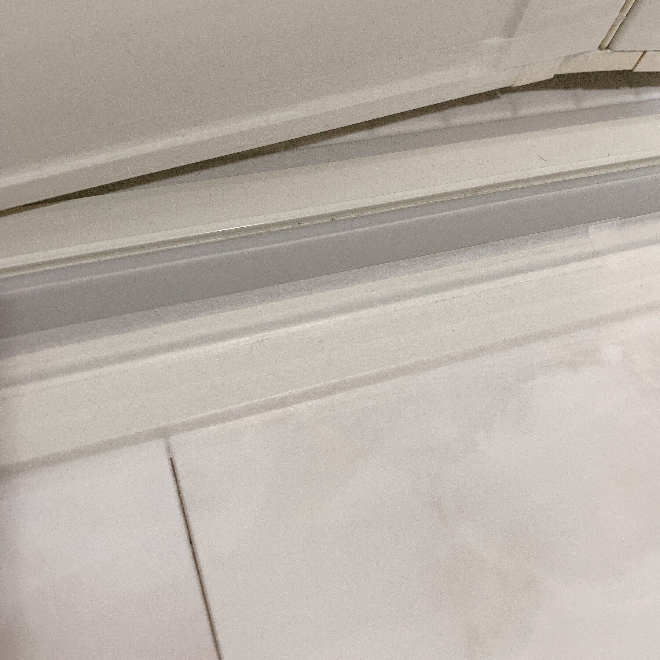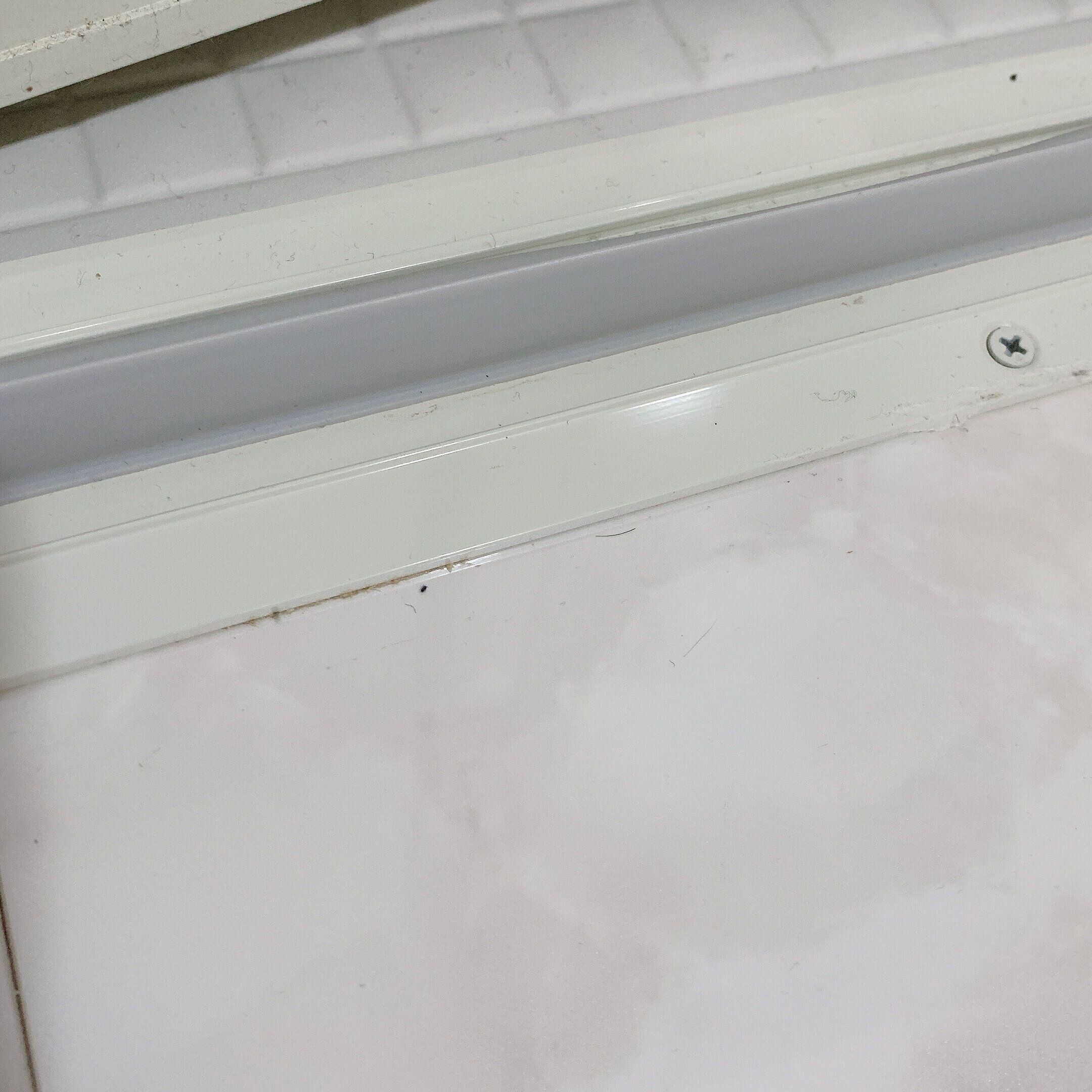 お風呂のドアの境目です。ここが意外と汚れるので、我が家は定期的に取り換えるようにしています。結構汚れが目立っていますが、テープを剥がすとこうなります。