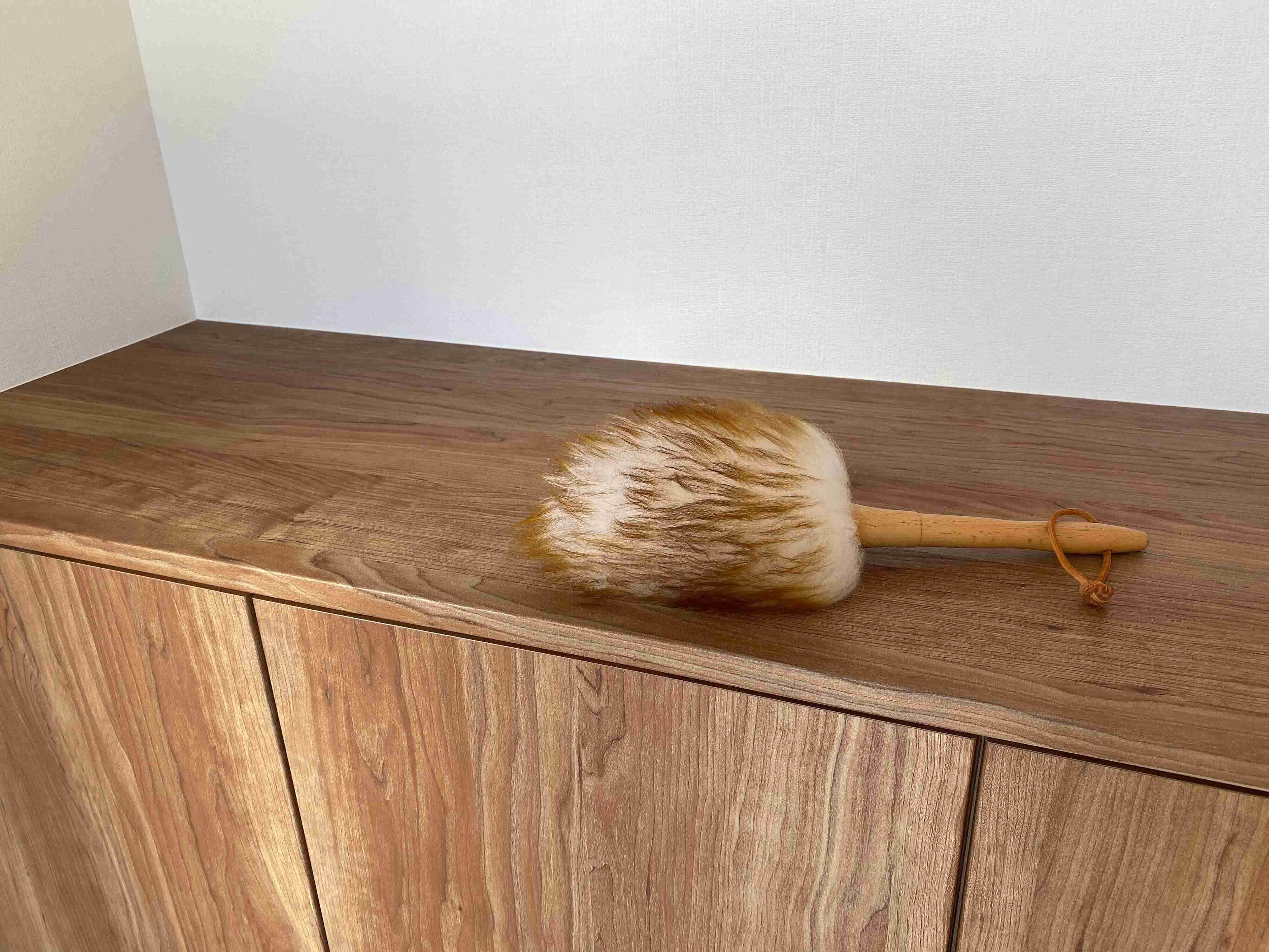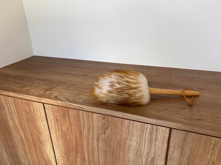 棚の上のほうからウールダスターでホコリを払い、固く絞ったウエスなどで拭きます。