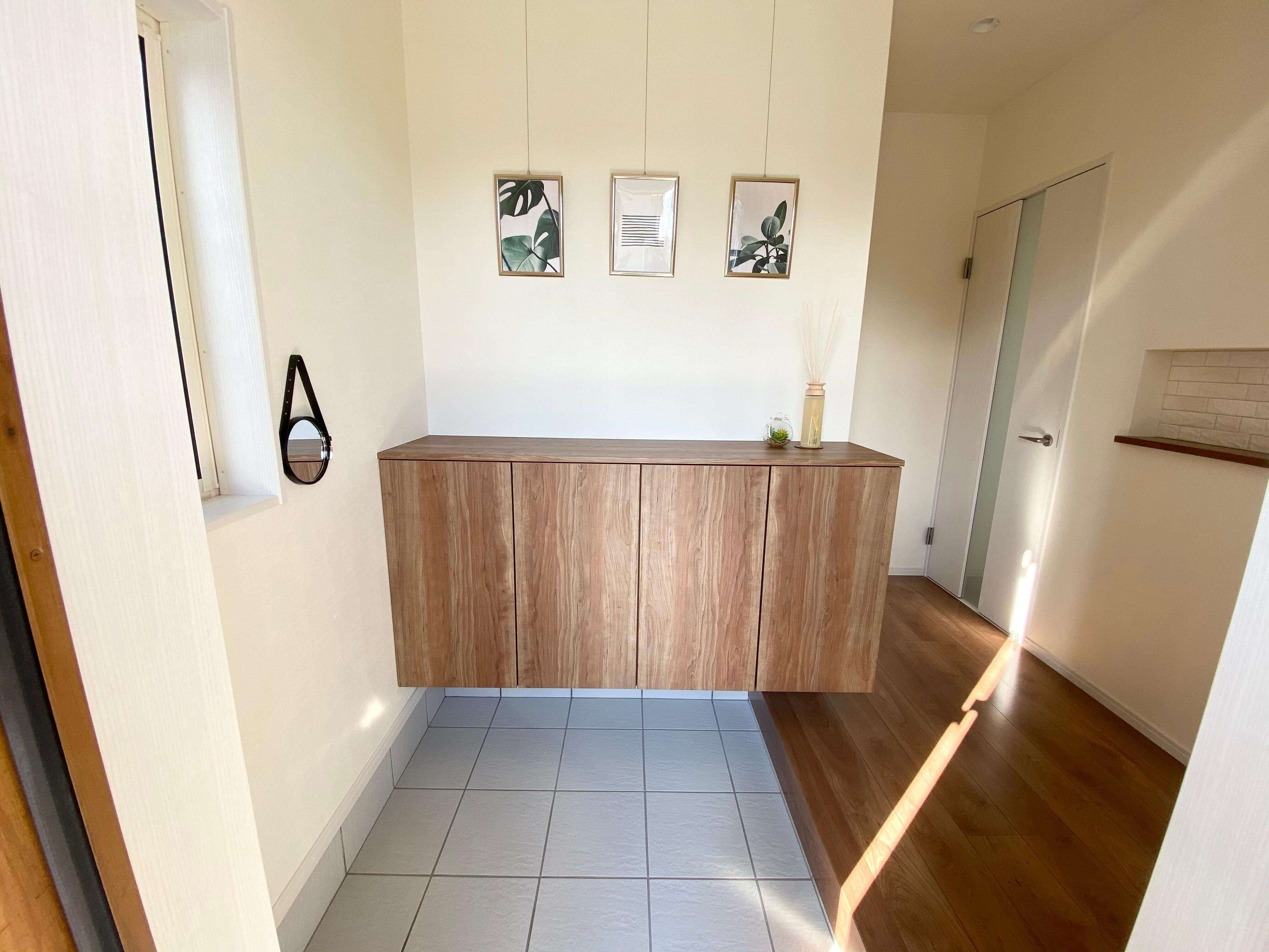 玄関はたくさんインテリアを飾りたくなりますが、すぐにホコリをかぶってしまうので定期的に見直しています。