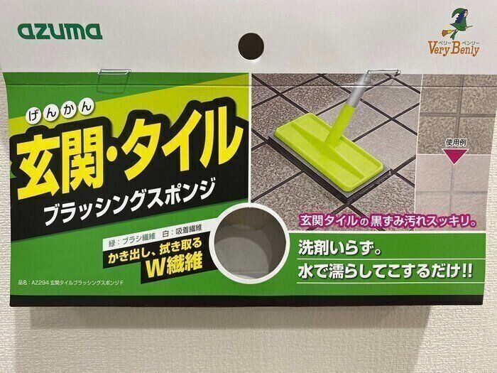 こちらのブラッシングスポンジは玄関に水をまかずに先端のスポンジを濡らすだけで汚れを落とすことができ、洗剤も不要なので気軽に使うことができます。
