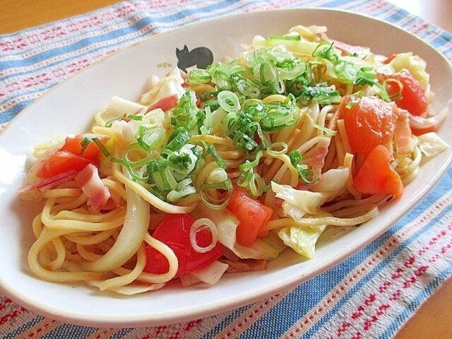 トマトとベーコンの塩焼きそば♪