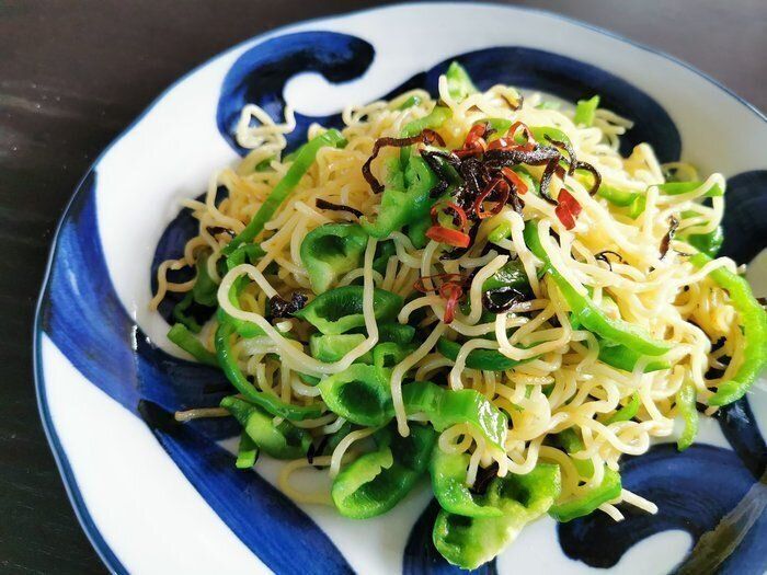 ピーマンと塩昆布を使った、お酒のおつまみにもぴったりなアレンジレシピです。少ない材料で、簡単につくれるのがうれしいポイント。麺はあらかじめほぐしておくと、べちゃべちゃにならずパラッと仕上がります。