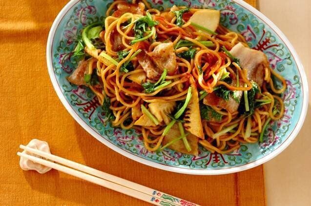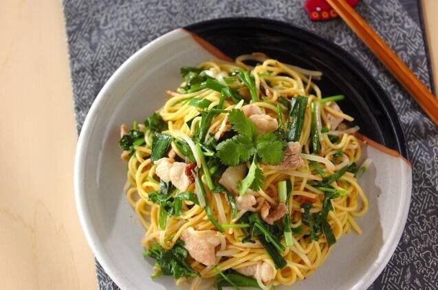 豚バラとチンゲン菜のピリ辛エスニック焼きそば