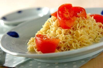 チキンラーメンで塩トマト焼きそば