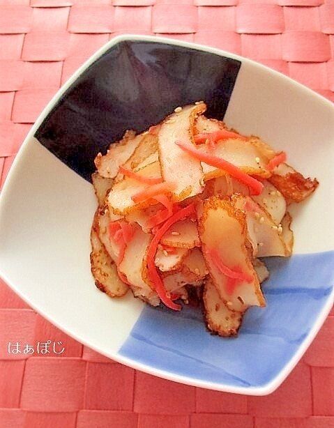 薄くカットしたさつま揚げと、紅しょうがを炒めた合わせたレシピ。少ない材料で手軽につくれる副菜です。お弁当やおつまみにもぴったりなので、多めにつくり置きするのもいいですね。