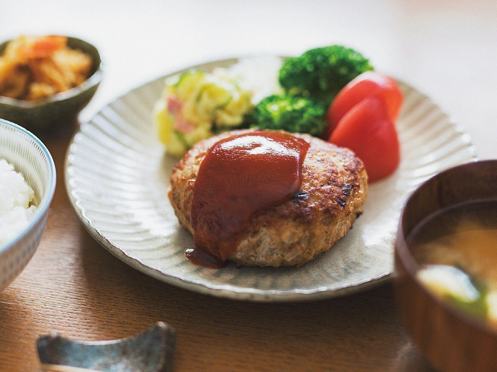 豚ひき肉1kg分で夕飯とべんとう用のハンバーグを一気に作ります。冷凍ポテトを使えばポテサラもかんたん。