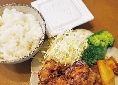 メインはから揚げ。ついでに業スーの冷凍ポテトを揚げました。月の前半は出費抑えめで、あとは出すだけの納豆。