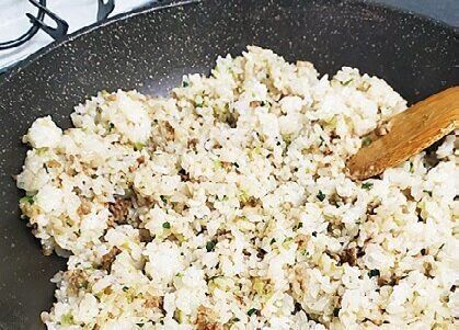 餃子をまとめて作ったとき、残して冷凍しておいたひき肉だねをご飯に混ぜて炒飯にする、人気メニュー。