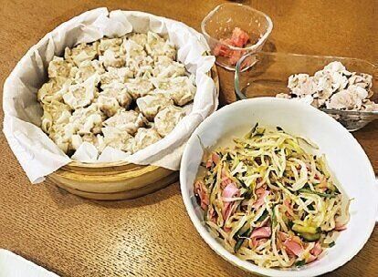 シュウマイはまとめて作って冷凍すれば、1回の手間で2~3回食べられます。残っていた豚こまは冷しゃぶに。