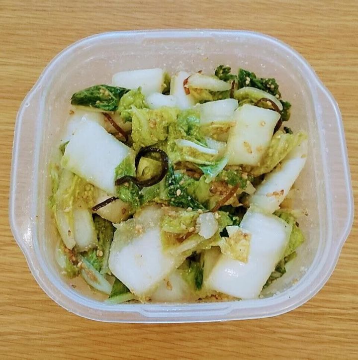 自分で塩味をおさえつつ酸味とごま油でまろやかにしています。
