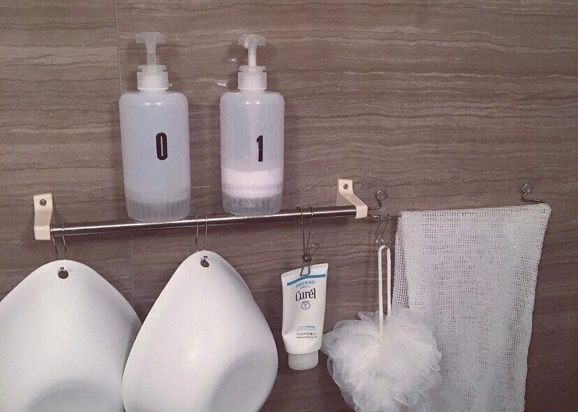 タオルバーを使って吊るしたり載せたり。