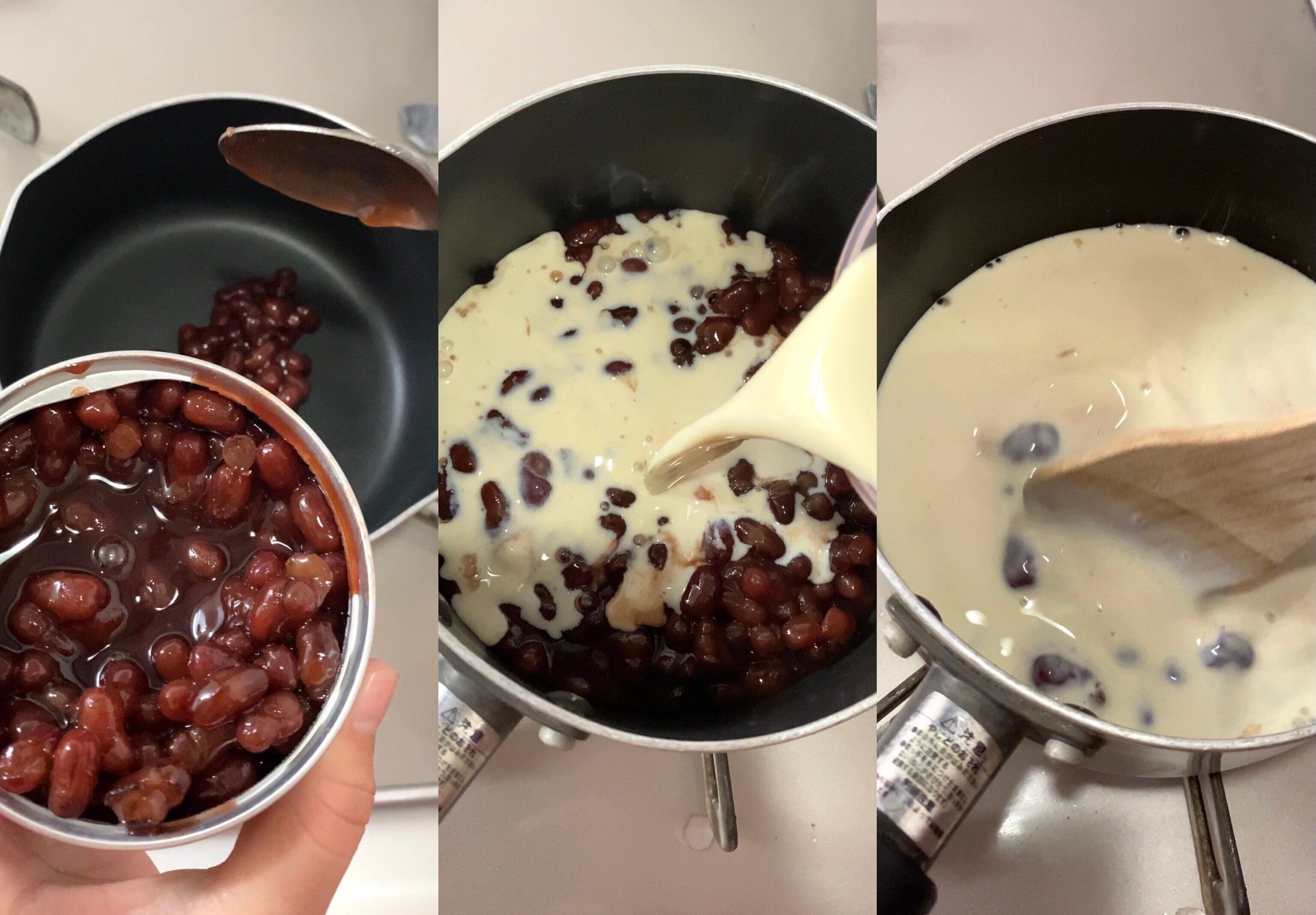 1.小鍋にゆであずきと豆乳を入れる。