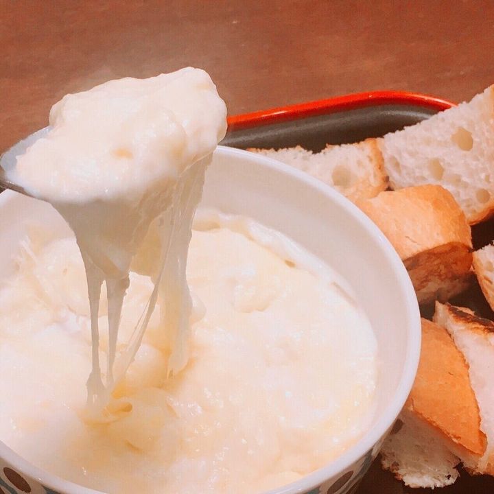 付け合わせはチーズフォンデュ。ホットプレートに乗せておけばとろとろいい感じに食べられます。