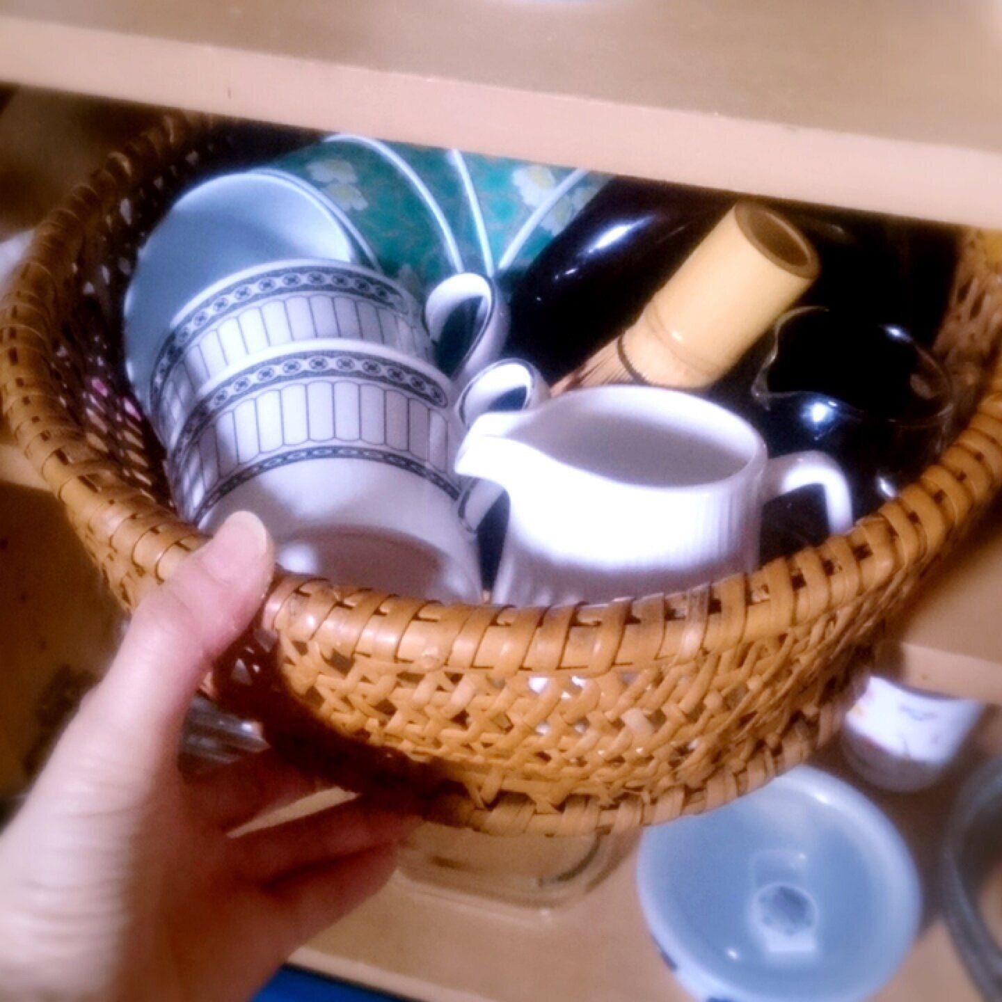 多少かさばりますが、かごは仮収納にも実収納にも使える、あると便利なエコ収納アイテムです。