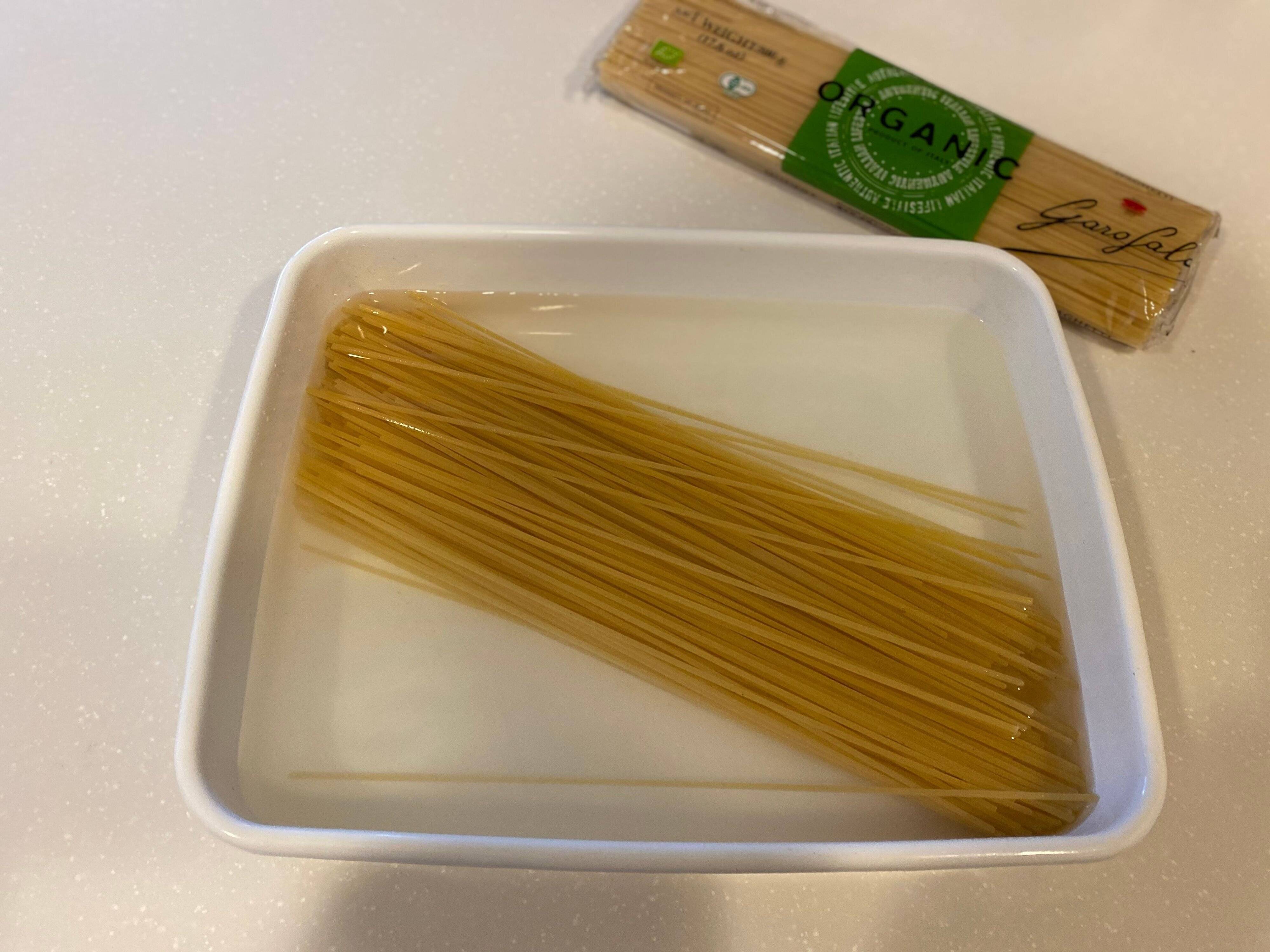 1.バットに材料Aを入れ(全てのパスタが水に浸るように気をつける)3時間置く