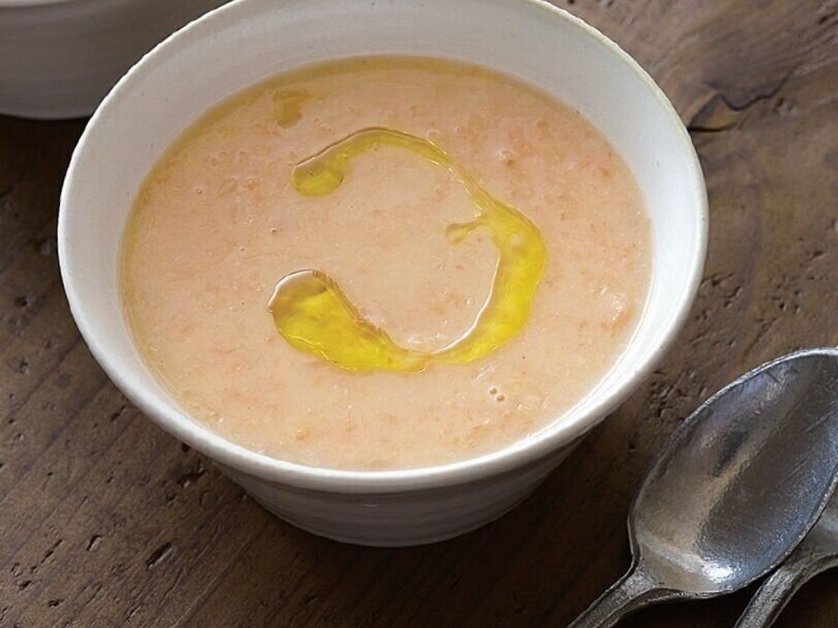 (1)を中火にかけて温め始める。温まったら器に注ぎ、オリーブ油をたらす。