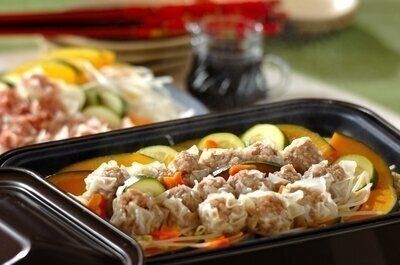 蒸したてのシューマイが食べられるレシピ。いっしょに野菜も蒸すのでこれだけで栄養満点です。ホットプレートでみんなでワイワイ食べられます。