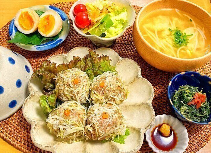皮の代わりにふんわりとキャベツをまとった、見た目もかわいらしいシュウマイレシピ。肉ダネにかさまし用のきのこがたっぷり入っているので、食べ応えもバツグン!しっかりと味がついているので、お弁当のおかずにも最適です。