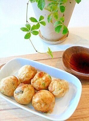 たこの代わりに鶏肉を使った、変わり種たこ焼きレシピ。ジューシーな鶏もも肉に、チーズの塩気と大葉のさわやかさがよく合います。ソースはもちろん、めんつゆにつけてさっぱり食べるのもおいしいですよ。