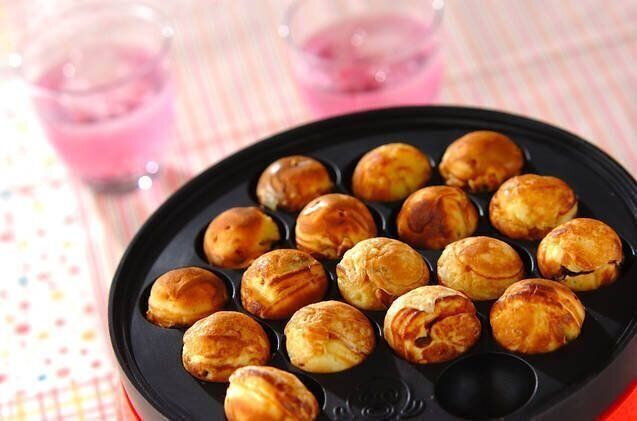 こちらはなんと、ホットケーキミックスを使った甘い生地のたこ焼き!フルーツやチョコチップなどを包めば、たこ焼きをスイーツとして楽しめます。積み重ねてパフェをつくるのもおすすめです。