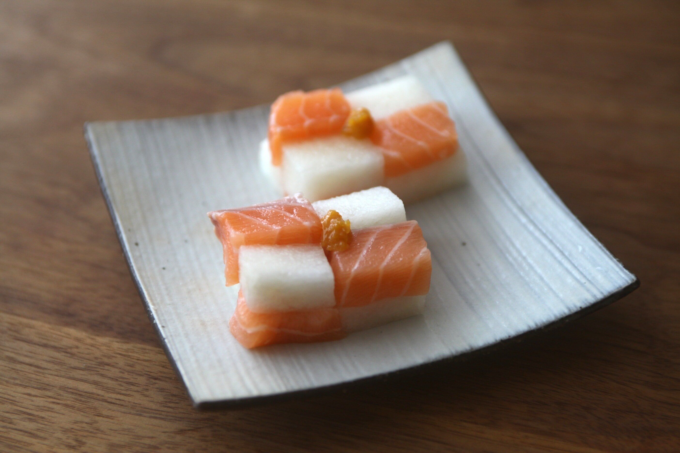 サーモンと梨の前菜