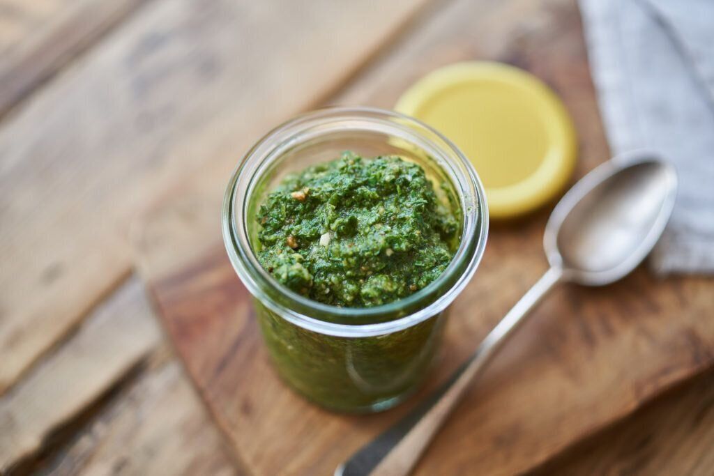 お茶の新芽を使ったジェノベーゼソースのレシピです。まとめてつくっておけば、パスタやピザ、トーストにもアレンジができておすすめです。
