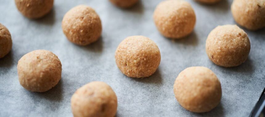ころんと丸い形がかわいらしいクッキーです。簡単なのに見た目もかわいく味もバッチリおいしくつくれます。ココナッツの香りがたまらないレシピです。