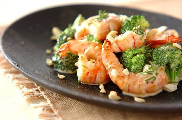 ブロッコリーとエビがたっぷり入った、食べごたえバツグンのエビマヨレシピ。ハーブの香りをきかせたこってりマヨソースが、具材によくからみます。仕上げに散らしたナッツが、食感とコクにいいアクセントを与えてくれますよ。