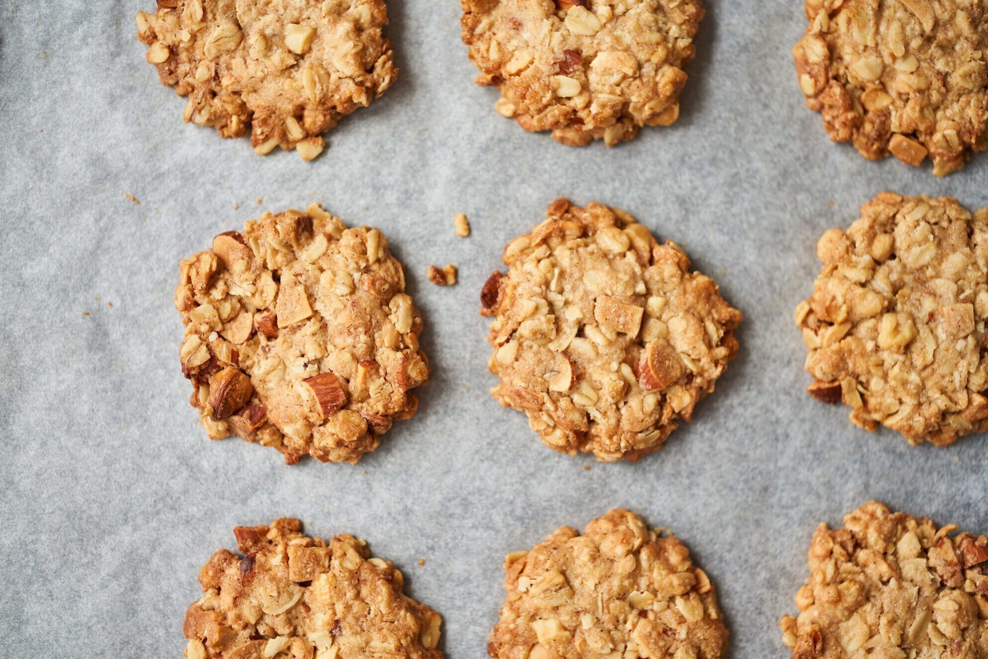 オートミールとナッツのザクザク・カリカリ食感を楽しめるクッキー。シナモンや豆乳などヘルシーな食材でやさしい甘さに仕上げているので、いくらでも食べられちゃいそうですね。レーズンを加えて、甘味と食感をアップさせるのも◎。