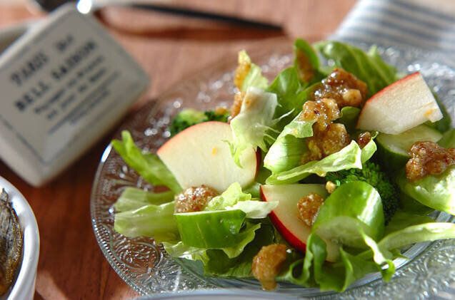 あと一品食べたい!という時にぴったりの、ナッツドレッシングサラダのレシピ。レタスやきゅうり、ブロッコリーと具だくさんで、カシューナッツ入りのドレッシングが野菜とよく合いそうです。洋食の副菜におすすめですよ。