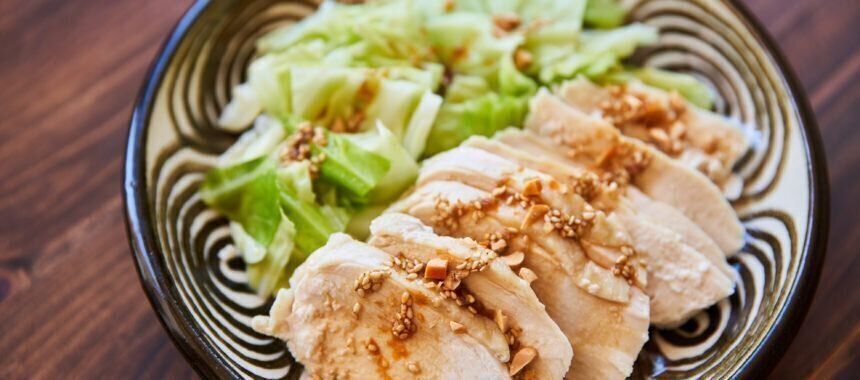 【糖質控えめレシピ】レンジ蒸し鶏 ピーナッツ中華だれ